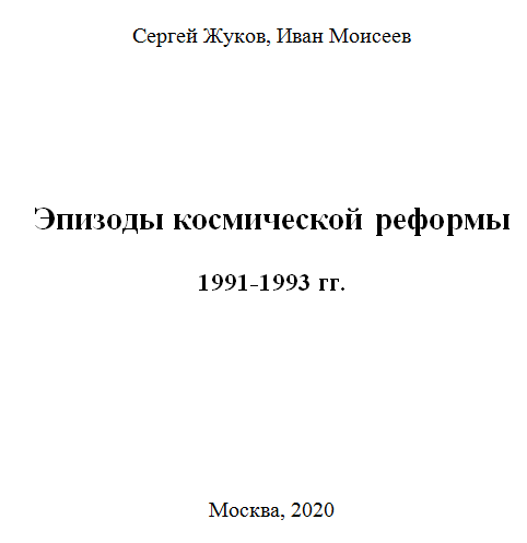 Жуков, С.А., Моисеев, И.М. Эпизоды космической реформы. 1991-1993 гг./ Под. ред. С.В. Кричевского. М., 2020